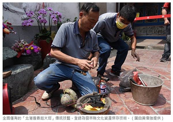 全國僅有的「北港進香起火坩」傳統技藝,登錄為雲林縣文化資產保存技術。(圖由黃偉強提供)