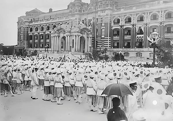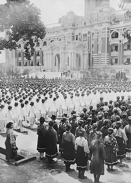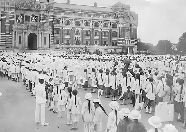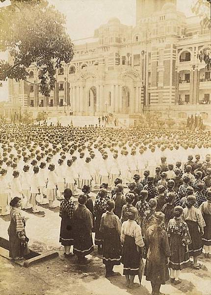 圖1: 女學生在總督府前列隊歡迎裕仁。