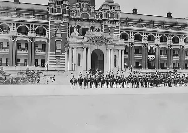 抵達臺灣總督府的攝政皇太子與迎接的騎兵隊(1923年4月)