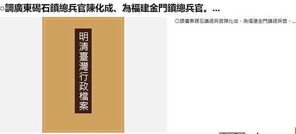 ○調廣東碣石鎮總兵官陳化成、為福建金門鎮總兵官。…-文化部國家文化記憶庫