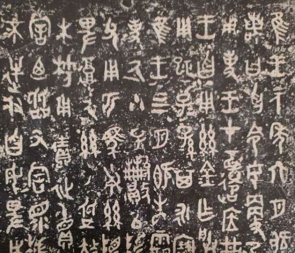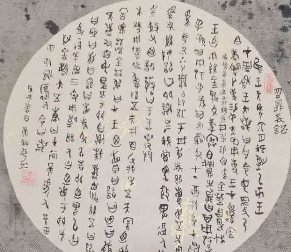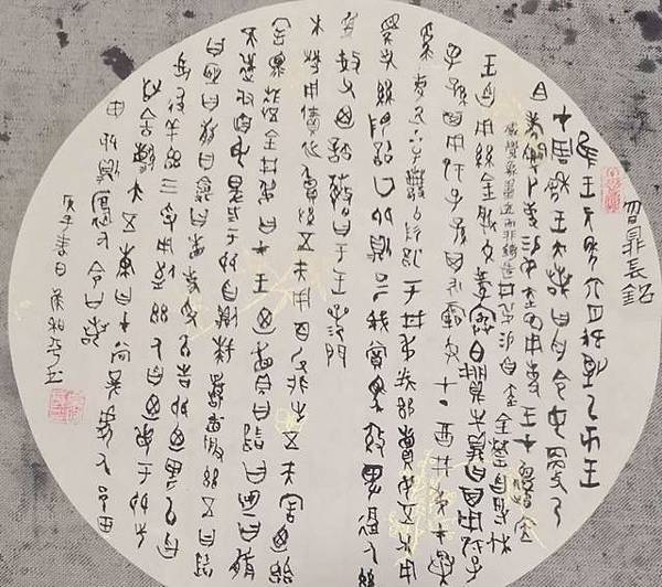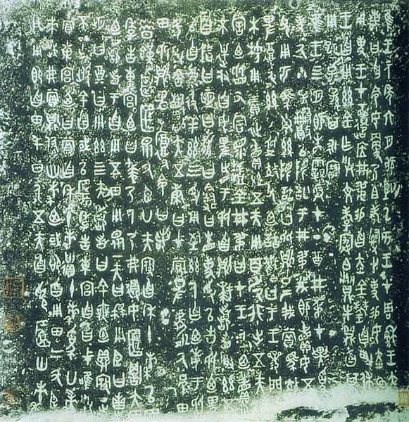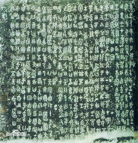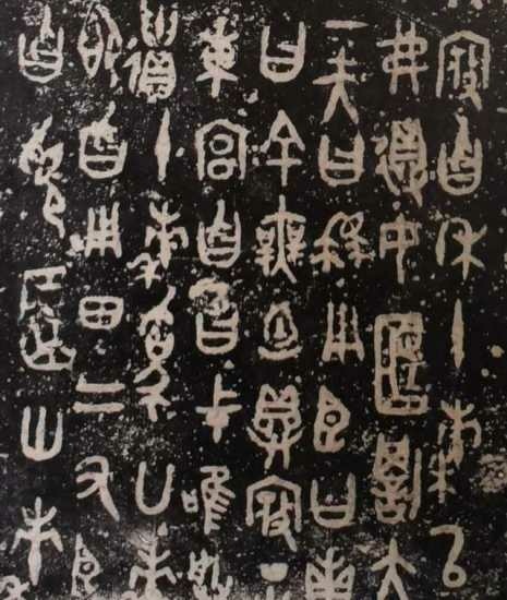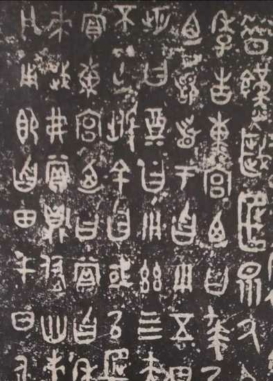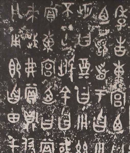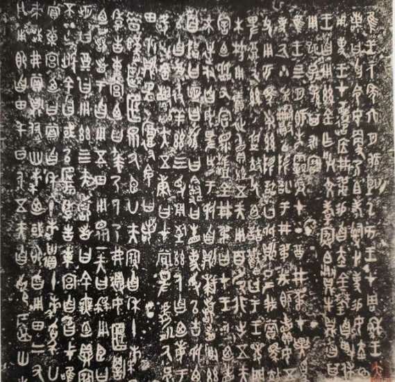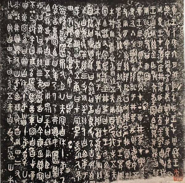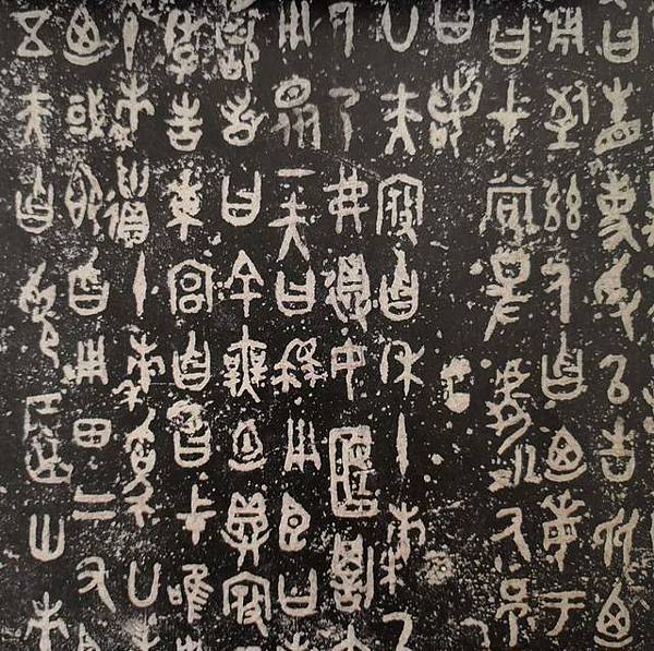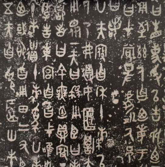 銘文乍看上去密不透風,細品慢察又灑脫從容。雖然豎列排的較緊,但橫列卻能縱橫馳騁,字跡大小不等,並不勻稱分佈,字畫較多的可佔一二字位置,字畫少的儘量縮小空間,加上一些古老的象形字型雜陳其間,憨態可掬,使章法活潑靈動,並無臃塞之感。