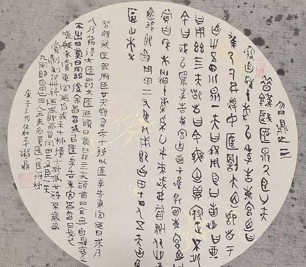 結體較為規範嚴整,線條勻淨渾圓,已不顯早期的簡陋與粗疏,不期然地進入了“成年期”。其字形美觀大方,字勢峻朗,字型統一,象形成分進一步弱化,形意字為主體,線條簡化,儘管儲存少許筆畫繁多的象形字,只是增加了整體的生動性,並不妨礙整體篇章之美。