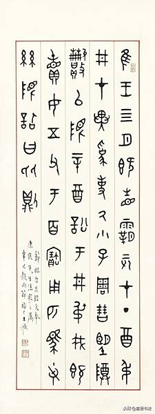此銘堪稱金文的規範之作。幾百個字都是經過演變定型的大篆書體。篆法合規,寫法統一,少有怪異生癖之字,屬於大篆“通用體”。字形組合優美,點畫位置適中,符合審美一般規律,入佳妙之境。