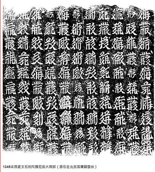 1345年西夏文石刻陀羅尼拓片局部(原石在北京居庸關雲台)【大百科詞條(稿)】西夏文 、契丹文、女真文、八思巴字_今日語言學 - 微文庫 https://bit.ly/3MMURIe