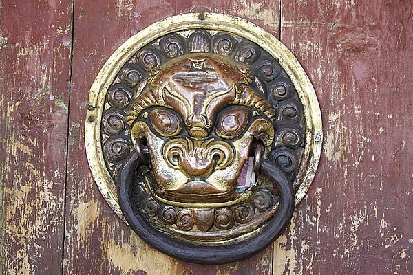 尤其是這白塔的相輪堂內曾發現不少歷史文物,令我更加好奇。塔身的最底座是灰磚砌成,興許是風化了吧,色彩顯得斑駁脫落。周圍掛滿的經幡不時被風吹起,驚現一處似圖騰的磚雕。