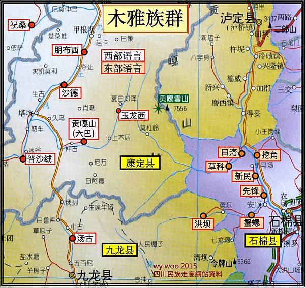 被稱為四川的群山之王——貢 嘎山,在海拔24,790英呎高山 上,住著木雅人,他們屬於藏族,人 口大約15,000。 木雅人一般可以說羌系木雅語, 另外西木雅人也可兼用藏語溝通,而東 木雅人則諳 漢語。雖然 兩個族群的 語言有相似 之處, 但他 們無法相互 溝通。 多年以 前, 有一支 遊牧民族住在木雅貢嘎地區,因此這 個地區也被稱為「牦牛國」。「木 雅」這個名字源自於「山羌」,一種 類似麋鹿的動物,產於中國。有人認 為木雅人是這支遊牧民族的後裔;另 一些人認為曾經建立西夏王朝(11到 12世紀之間),在中國歷史上占一席 位的「黨項羌族」,應該就是木雅族 群的祖先。 東木雅人和西木雅人都信奉藏傳 佛教,並在各地建造了寺院,雖然他們 遵從藏族的風俗及佛教信仰,卻也保留 了木雅人的語言與民族特性。除了藏傳 佛教,東木雅人也信奉苯教,是一種和 佛教不同的藏族信仰。在他們當中從來 沒有關於基督徒活動的記錄。