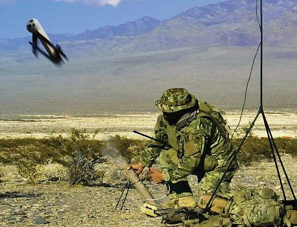 「彈簧刀無人機」被外界稱為「神風敢死隊無人機」,是一種小型輕型無人機,以每小時63英里的速度巡航,可以在空中徘徊長達30分鐘,然後由數十英里外地面上的操作員引導至目標。無人機是從管子發射的,就像迫擊炮彈一樣。它的實時GPS引導系統允許現場服務人員駕駛它,直到它如炸彈一樣投射到目標,並與目標同歸於盡。