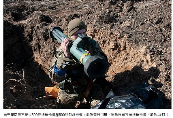 圖片來源 : 蘋果新聞網烏克蘭向美國列最新願望清單:每天需要標槍飛彈和刺針飛彈各500枚 | 蘋果新聞網 | 蘋果日報 https://bit.ly/358uGL4