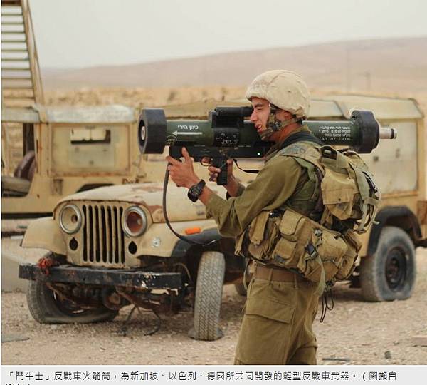 「鬥牛士」反戰車火箭筒,為新加坡、以色列、德國所共同開發的輕型反戰車武器。(圖擷自Wiki)
