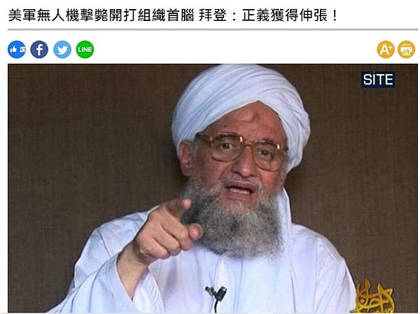 美國官員2022/8/1(1日)透露,美國中央情報局(CIA)在阿富汗一次無人機攻擊行動中擊斃開打組織(Al-Qaeda)首腦薩瓦里(Ayman al-Zawahiri),是開打組織自從2011年前領導人賓拉登(Osama bin Laden)遭美軍擊斃後的最重大打擊。綜合外媒報導,薩瓦里是一名來自埃及的醫師,過去曾協調「911恐攻」的行動相關細節,並和多項恐怖攻擊行動有關,包括美國駐肯亞與坦尚尼亞自殺炸彈爆炸案,以及2000年10月的美國軍艦科爾號爆炸事件。美軍無人機擊斃開打組織首腦 拜登:正義獲得伸張! - 國際 - 自由時報電子報 https://bit.ly/3zPcliB