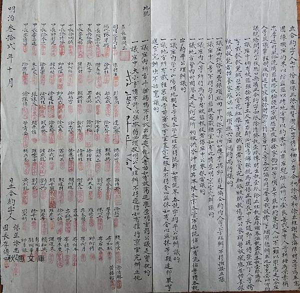 依官府要求進行簽署聯庄組織合約,以防盜匪以靖地方事務