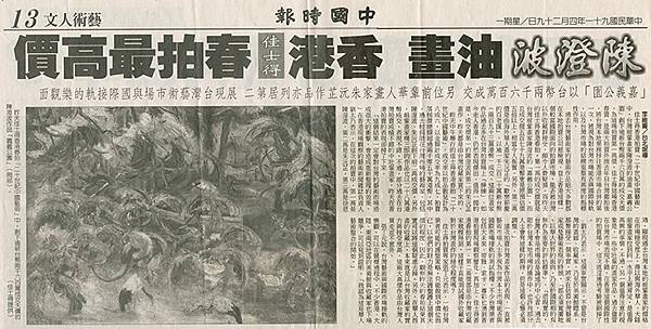前輩畫家陳澄波是台灣身價最高的畫家。2007年,其油畫「淡水夕照」在香港佳士得拍出2.21億元的天價,迄今仍是台灣畫家油畫拍賣最高紀錄。然而許多人不知道,陳澄波第一幅在國際拍賣行拍賣的畫其實是「嘉義公園」卻流拍,這幅流拍的油畫,卻意外改變了台灣拍賣歷史。