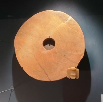 中國玉器早期因為預料少,玉料珍貴,經常可見以天圓地方造型玉器,作為向天祭祀之用,也可見鳥禽意象的玉器,象徵人神溝通媒介。(江昭倫攝)