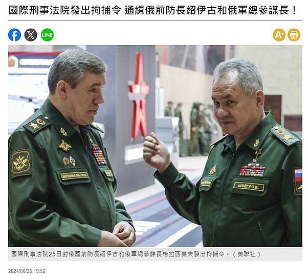 國際刑事法院發出拘捕令 通緝俄前防長紹伊古和俄軍總參謀長! - 國際 - 自由時報電子報