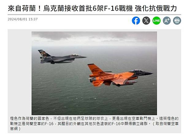 來自荷蘭!烏克蘭接收首批6架F-16戰機 強化抗俄戰力 - 自由軍武頻道