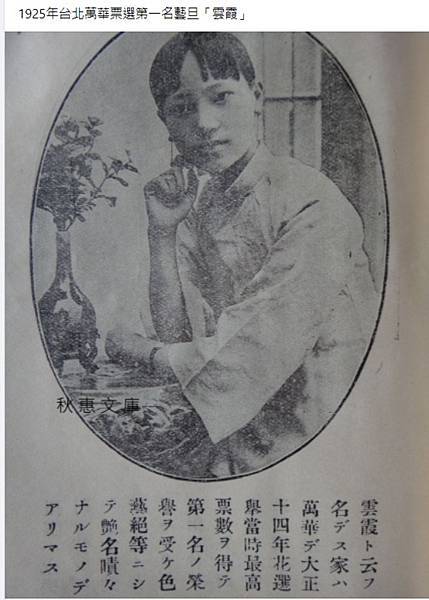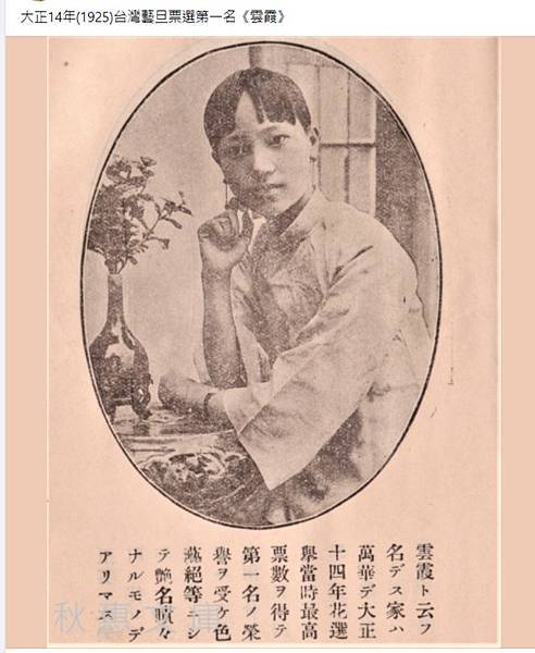 大正14年(1925)台灣藝旦票選第一名《雲霞》