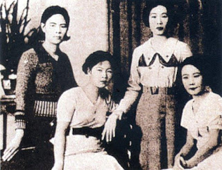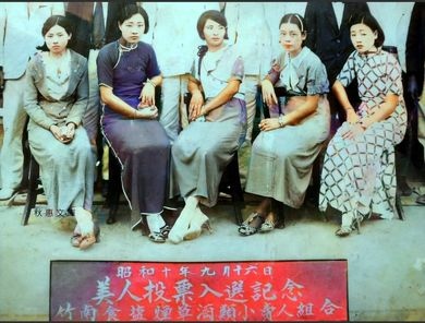 1930年代台語流行歌曲歌手紀念照,她們是第一代台語流行歌曲歌星,右一為純純小姐,她唱紅了「望春風」、「雨夜花」等名曲。左二為愛愛小姐,兩人曾合唱鄧雨賢譜曲、周添旺作詞的「滿面春風」。