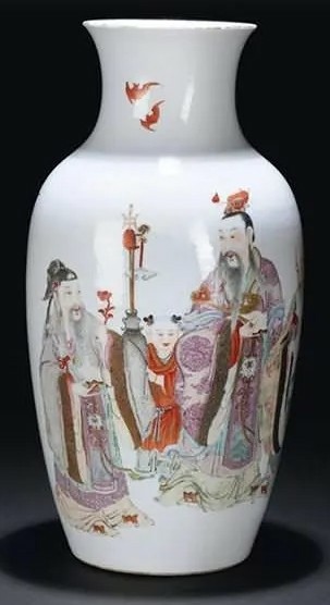 這三位道教神仙源於星宿傳說,福星又被稱作為福神,在道教中也稱之為紫微大帝;祿星又被稱為文昌星,道教稱為文昌帝君,掌管民間的功名利祿;壽星則是南極老人星,像《西遊記》中就有南極仙翁的出場。在這三位神仙的身旁,常常會有鹿的出現,象徵著利祿。古代人把由蝙蝠、鹿和松鶴或蟠桃組成的紋飾圖案稱為「福祿壽紋」,寓意五福臨門、高官厚祿、長命百歲。