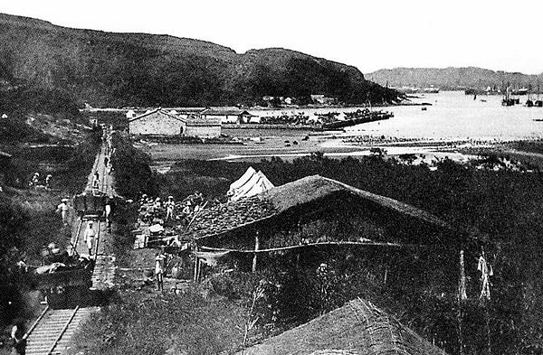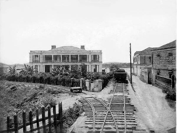 1895年,台北大稻埕,清朝劉銘傳鐵路起點,前方為德國領事館。