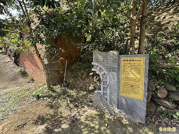 新竹縣湖口鄉湖南社區發展協會爭取設置清代橋墩解說牌。(記者廖雪茹攝)