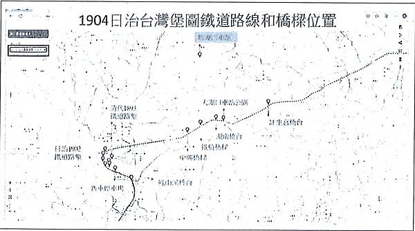 裡面是1904年的堡圖,從臺北市八德路至新莊的劉銘傳鐵路已被