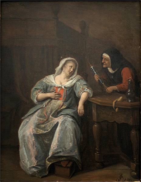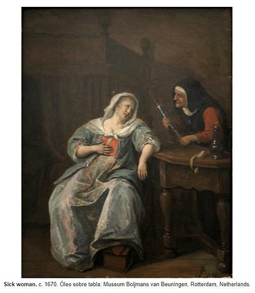 生病的女人。 C。 1670. Aleo sobre tabla。 Boijmans van Beuningen 博物館,荷蘭鹿特丹