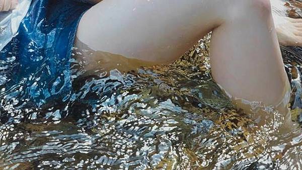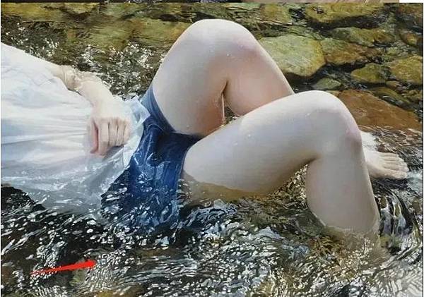 一幅日本畫家名叫三重野慶超寫實油畫《水中少女》,放大8倍,皮膚清晰可見-畫中女孩的身體放大8倍,她的皮膚清晰可見,劉海則一縷一縷地貼在額頭上,陽光照在她的臉上,看起來美極了。而她穿的白色T恤,也因被水浸濕而變成半透明狀態,T恤里的皮膚若隱若現 https://bit.ly/3RpOUlz