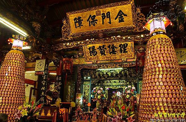 《三國志.魏志.任城陳蕭王傳》「常愿得一奉朝覲,排金門,蹈玉陛,列有職之臣」;王維《早朝》「銀燭已成行,金門儼騶馭」這兩段文字中的「金門」意思是說:門以黃金飾之者,指的就是天子之門。此匾之「金門」又從天子之門,進而借代為天子,對皇帝而言,天子即朕,朕即天子;所以「金門保障」的意思是說:城隍是天子(朕)的保障。