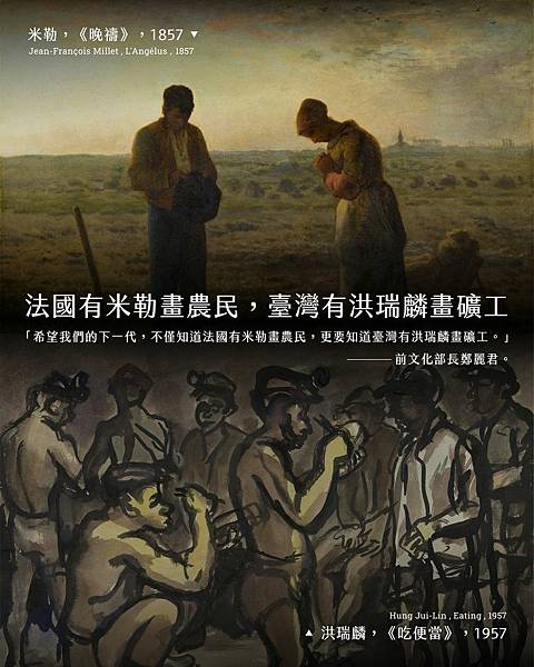 前文化部長鄭麗君曾說:「希望我們的下一代,不僅知道法國有米勒畫農民,更要知道臺灣有洪瑞麟畫礦工。」
