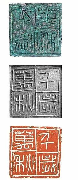 造。白文古璽大多加邊欄,或在中間加一豎界格,文字有鑄有鑿。官璽的印文內容有“司馬”、“司徒”等名稱外,還有各種不規則的形狀,內容還刻有吉語和生動的物圖案。朱文古璽大多加邊欄,或在中間加一豎界格,文字有鑄有鑿。官璽的印文內容有“司馬”、“司徒”等名稱外,還有各種不規則的形狀,內容還刻有吉語和生動的物圖案。