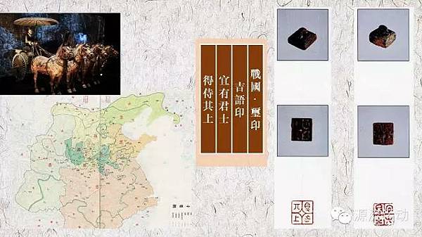傳世的古代璽印,多數出於古城廢墟、河流和古墓中。有的是戰爭中戰敗者流亡時所遺棄,也有在戰爭中殉職者遺棄在戰場上的,而當時發動機慣例,凡在戰場上虜獲的印章必須上交,而官吏遷職、死後也須脫解印綬上交。其它有不少如官職連姓名的,以及吉語印、肖形印等一般是殉葬之物,而不是實品。其它在戰國時代的陶器和標準量器上,以及有些諸侯國的金幣上,都用印章蓋上名稱和記錄上製造工匠的名姓或圖記性質的符號,也被流傳下來。