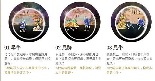 評:以上三首闡明絕對的聖位境界是言語道斷,超越言詮。得魚要忘筌,上岸要舍筏,進而凡情脫落,聖意皆空,人牛兩忘,泯除一切心境對待。