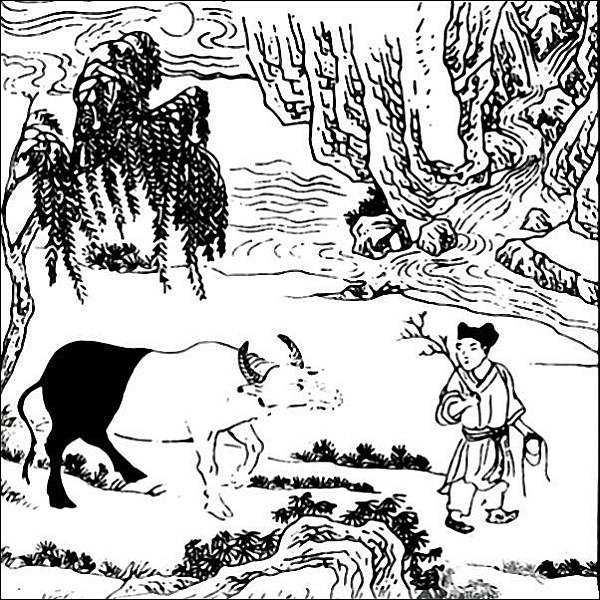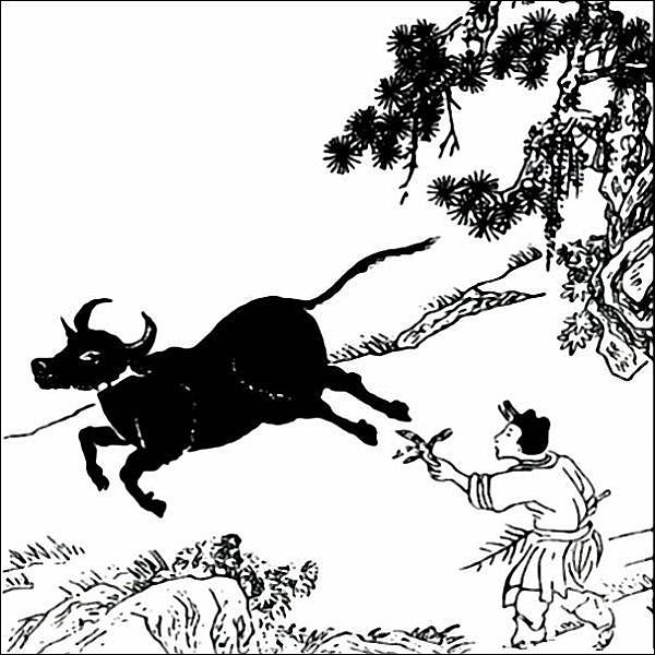評:牛已不食苗稼,心已不放縱逾距,收放自如。