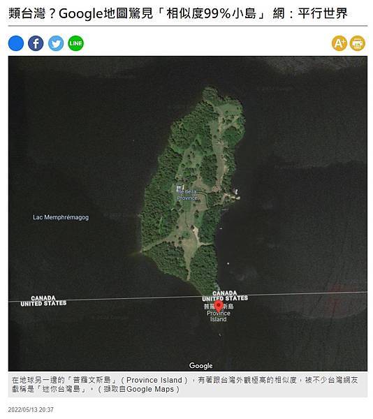 普羅文斯島,位於美國與加拿大的邊界,由兩國共管的島嶼,面積不大,但地形與台灣相似度幾乎達百分之百,尤其是南端延伸出去猶如恆春半島的一角。