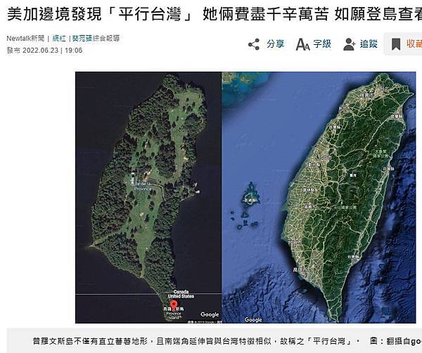 原文網址: 美加邊境發現「平行台灣」 她倆費盡千辛萬苦 如願登島查看 | 網紅 | Newtalk新聞 https://newtalk.tw/news/view/2022-06-23/774821