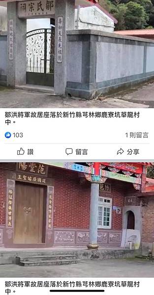 鄒洪上將故居位於新竹縣芎林鄉鹿寮坑,現已修繕整建為鄒氏宗祠。(圖文:莊秉漢)