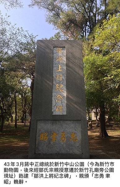 1954年5月,蔣中正總統在新竹中山公園飭建「鄒洪上將紀念碑」,一代台籍名將忠靈終得魂歸家鄉故土。(圖文:莊秉漢)