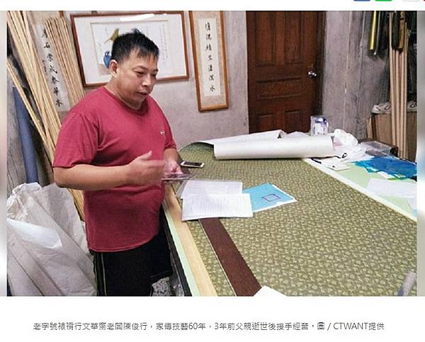 老字號裱褙行文華齋老闆陳俊行,家傳技藝60年,3年前父親逝世後接手經營。圖/CTWANT提供