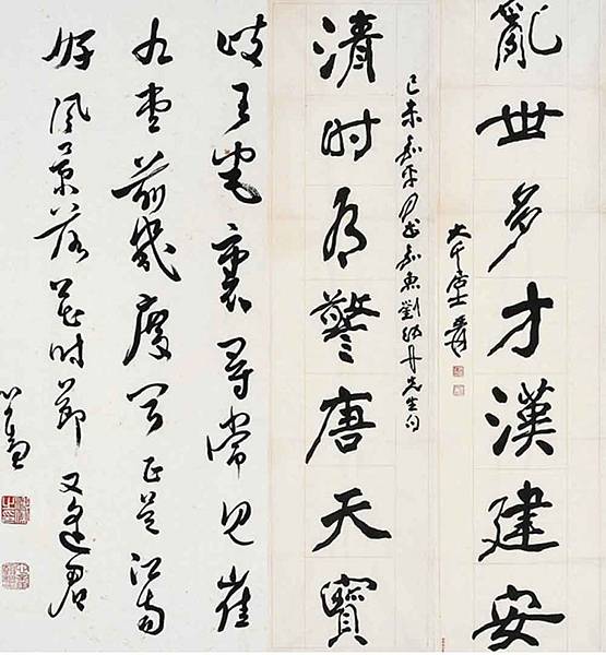 但這些遭焚毀的各式作品中,有彭騰睿送去裱褙的名家字畫共14幅,其中又以張大千所寫的「清時有警唐天寶、亂世多才漢建安」行書七言聯句,和溥心畬所書杜甫的《江南逢李龜年》書法最為價值不菲,據估約在500萬元。
