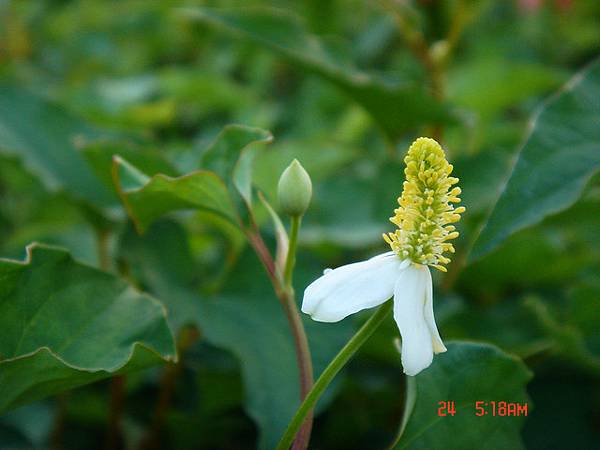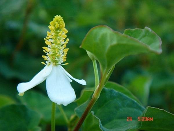 魚腥草,又名折耳根、截兒根、豬鼻拱、蕺菜,客家話稱之狗貼耳。