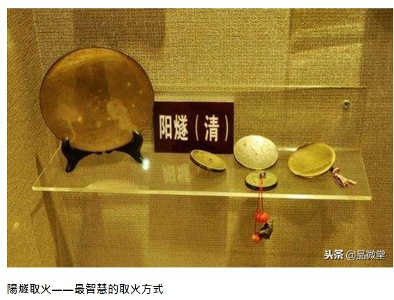 陽燧就是一面圓形的凹面銅鏡,用其凹面對準太陽,當達到一定溫度時,就可以燃燒了。2006年,河南省三門峽虢國博物館利用古代虢國陽燧取火成功,從而驗證了《周禮》等史志對於陽燧的記載。