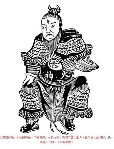 聖人得到啟示,他上觀天象,下察五行之一的火德,發明了鑽木取火,這位聖人就是燧人氏。 圖為燧人氏像。(公有領域)