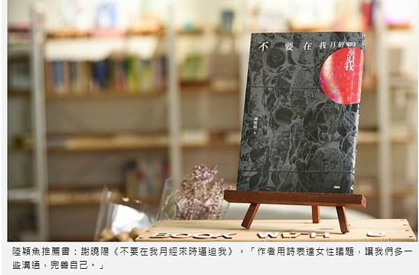 陸穎魚推薦書:謝曉陽《不要在我月經來時逼迫我》。「作者用詩表達女性議題,讓我們多一些溝通,完善自己。」