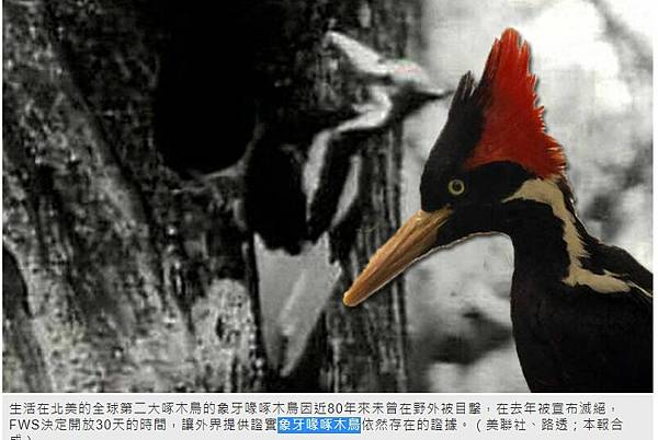 找尋最後存在證明!象牙喙啄木鳥從滅絕名單中獲6個月緩刑 - 國際 - 自由時報電子報