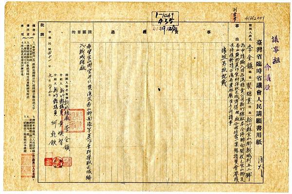 新竹縣新城糖廠李金鎮請願為申請編入蔗作原料採取區域寶斗仁、南隘、雙溪等地請求核准案,轉請農林廳、臺糖公司參考。