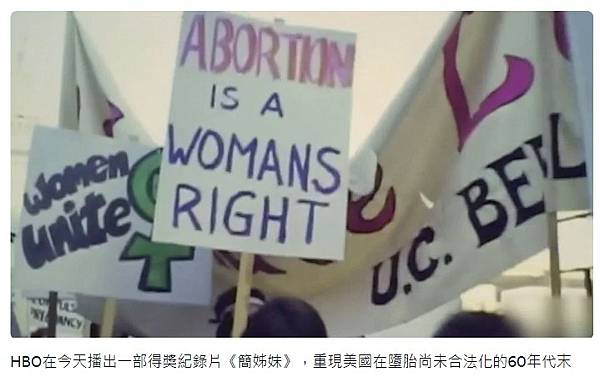 HBO在今天播出一部得獎紀錄片《簡姊妹》,重現美國在墮胎尚未合法化的60年代末期,一群勇敢的女性組成地下組織,讓婦女可以免費且安全的墮胎,她們幫助了上萬名婦女。由於美國最近傳出最高法院有意推翻保障墮胎權的羅訴韋德案裁決,也讓這部紀錄片的上映,顯得格外意義重大。