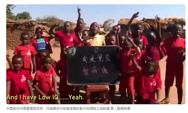 名叫盧克的中國人被控在馬拉威村莊剝削兒童,他拍攝孩子們在不明白意思的情況下,用中文說出侮辱非裔字眼的影片,然後在中國社群媒體上出售,英國廣播公司(BBC)上週揭發了此事。在BBC的影片中,一群兒童齊喊:「我是黑鬼,智商低。」