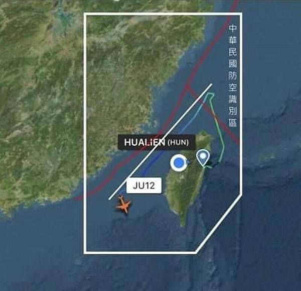航空迷根據騰雲無人機的航跡,和我國航空識別區進行對比。(取自flightradar )