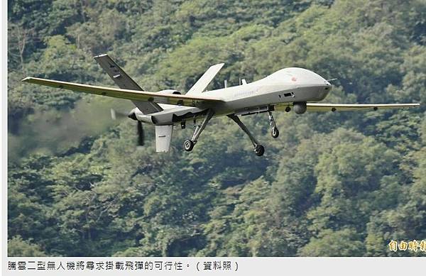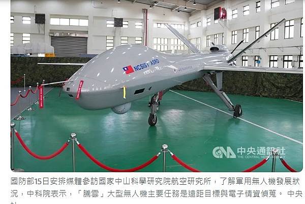 中科院在國防部要求下,近期全力加強無人機的研發及自製能量,研發、測試中的「騰雲二型」無人機,證實已具備長程飛航能力,及光學導引、指揮管制等功能,未來將和美製的MQ-9B海上衛士無人機搭配,藉此擁有長時間執行台灣周邊海域的監偵能力。