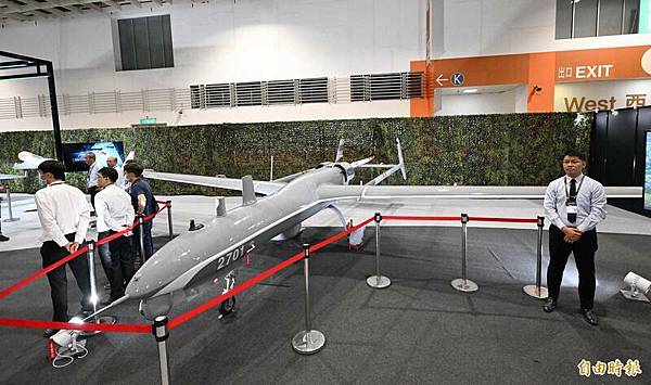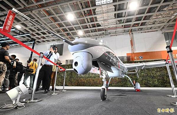 另外,現場也展示「騰雲」大型無人機,中科院簡報指出,這款無人機具衛星導控的中高度、長滯空、多酬載等特性,且具備自主起降、多重導控鏈路與地面聯網導控功能;並可攜掛電子光學、紅外線、合成孔徑雷達、電子偵蒐、語音航管通訊等酬載,可提供遠距即時監偵情資,發揮早期預警功效。